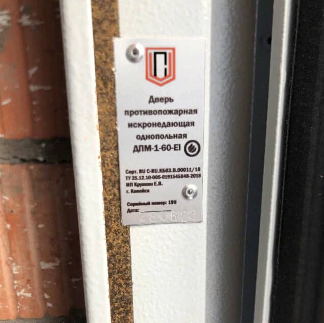 Противопожарные двери ДПМ одностворчатые EI 60 ТУ 25.12.10-006-0191545848-2021 купить. Металлические двери изготавливаются в Челябинске по стандартным и нестандартным размерам. Дверь ДПМ огнестойкая сплошная однопольная имеет огнестойкость 60 минут. Окрашена грунтовкой или нитроэмалью с двух сторон. Возможна отделка двери порошковым напылением. Дверь искронедающая соответствует требованиям ГОСТ 30247 0-94 и СНиП 21-01-97 и имеют сертификат пожарной безопастности и сертификат соответствия установленного на территории РФ, лицензия на монтаж.